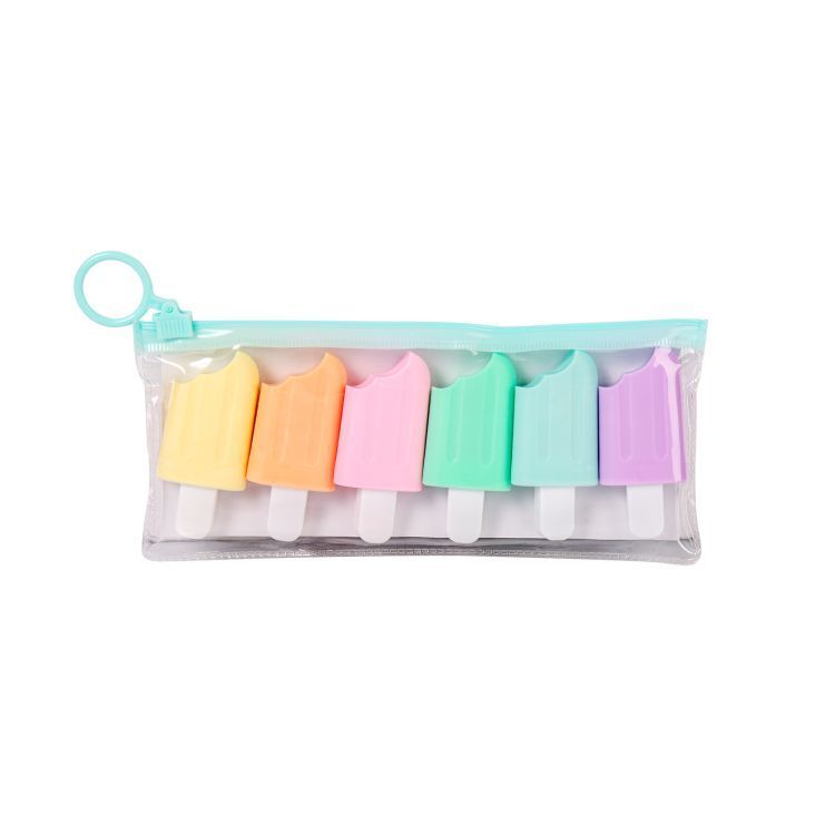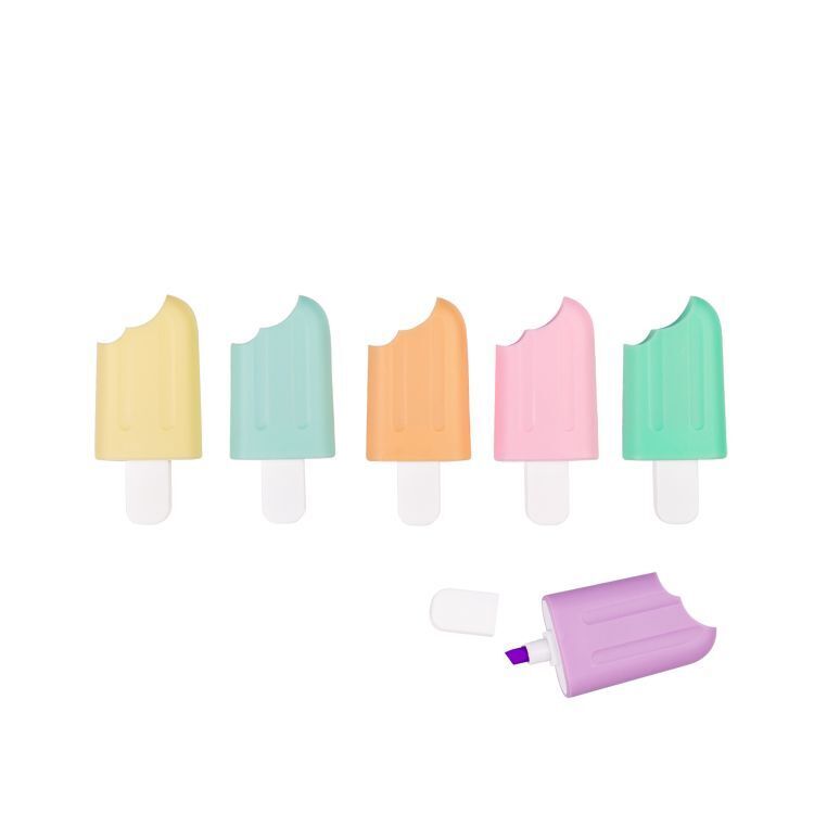 Sada obsahuje 6 kusů roztomilých zvýrazňovačů (žlutý, oranžový, růžový, zelený, modrý a fialový) ve tvaru nanuků.