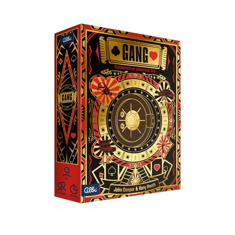 Inovativní kooperativní verze pokeru. Chcete-li ve hře zvítězit, musíte spolupracovat a vyloupit 3 trezory, aniž byste třikrát spustili alarm. Hra Gang obsahuje: 90 karet, 24 žetonů, česká a slovenská pravidla hry.