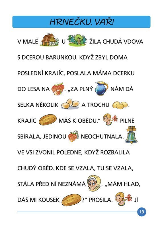 Máte doma předškoláka nebo začínajícího čtenáře? Objevte společně s ním pohádkový svět a rozvíjejte jeho vnímání. Veselé obrázky, které nahrazují slova v textu, udrží jeho pozornost a čtení se stane zábavou. Dítě se může aktivně zapojit a „číst“ pomocí obrázků. Naučí se tak sledovat text a...