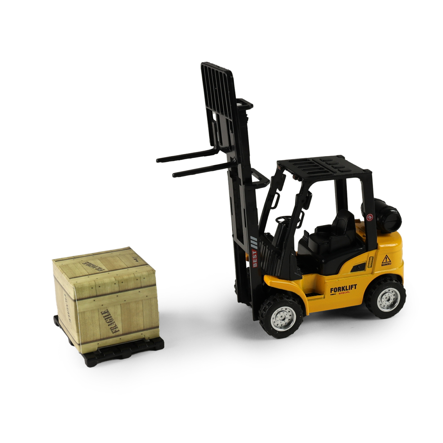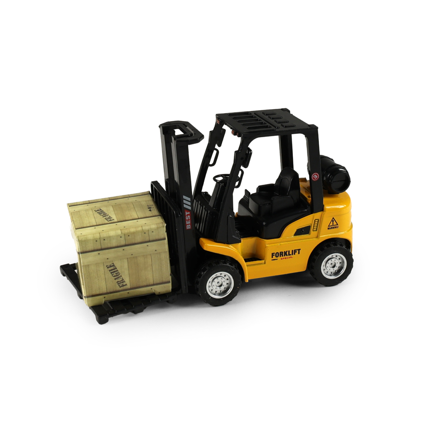 Vysokozdvižný vozík je skvělým doplňkem každé dětské sbírky stavebních nebo pracovních strojů. Díky zpětnému chodu se vozík po natažení dozadu sám rozjede vpřed, což zajišťuje zábavnou a dynamickou hru. Jeho délka je cca 13 cm a má pohyblivou vidlici. Vozík je ideální pro děti, které milují...
