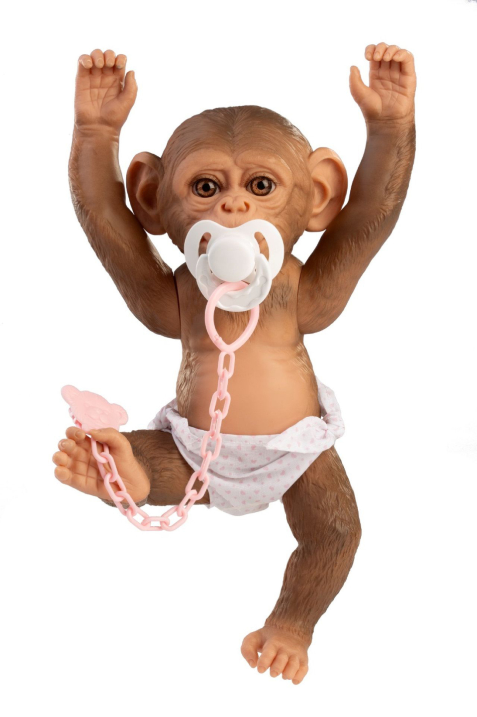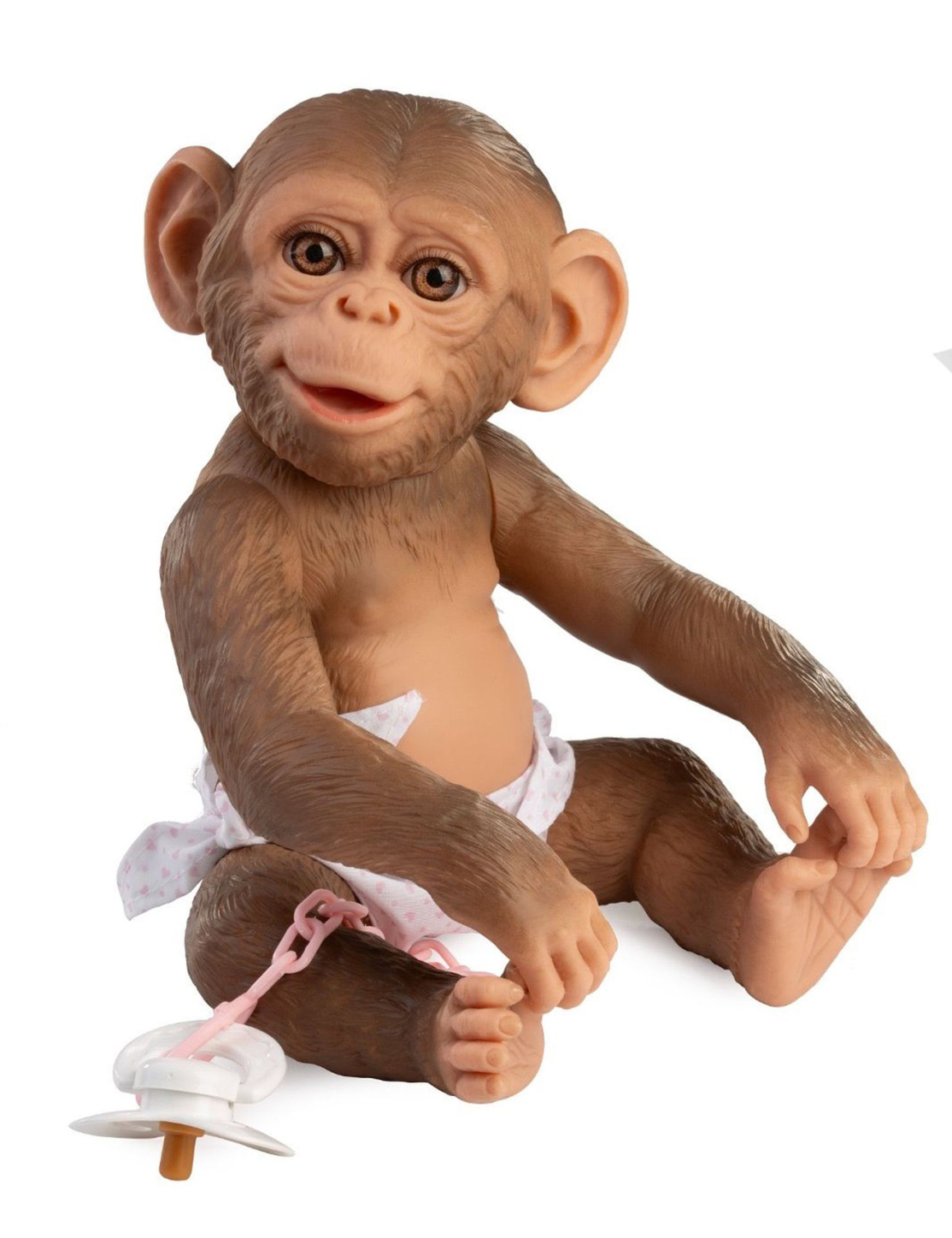 Veselé a roztomilé opičí miminko bez zvuku s vinylovým tělem s možností koupání, na kterém je zachycen věrohodně každý detail tohoto zvířecího mláďátka včetně různých záhybů, kromě pohlaví. Opičku lze koupat, ale je potřeba dát pozor, aby se jí nenamočily řasy. Odlepené řasy nejsou pak důvodem k...