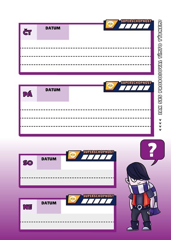 Hraješ Brawl Stars a ještě nemáš tenhle cool mega super školní zápisník? Najdeš v něm nejen praktický týdenní diář na jakýkoliv školní rok, barevný rozvrh hodin a přehledný roční plánovač, ale především spoustu svých oblíbených brawlerů, kteří trousí vtipné hlášky a v záloze pro tebe mají...