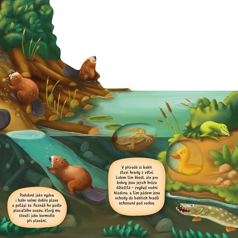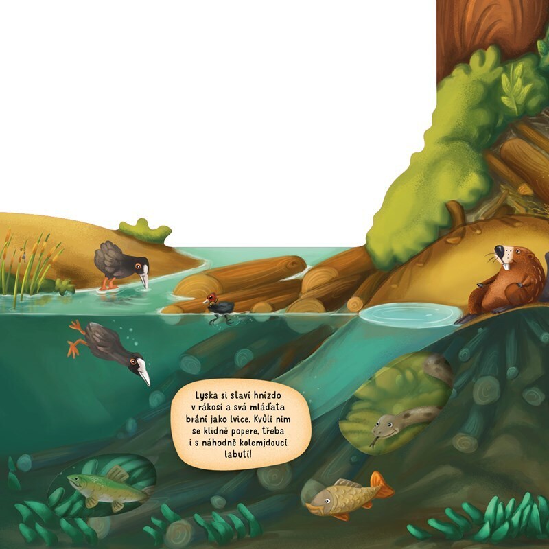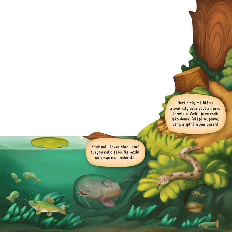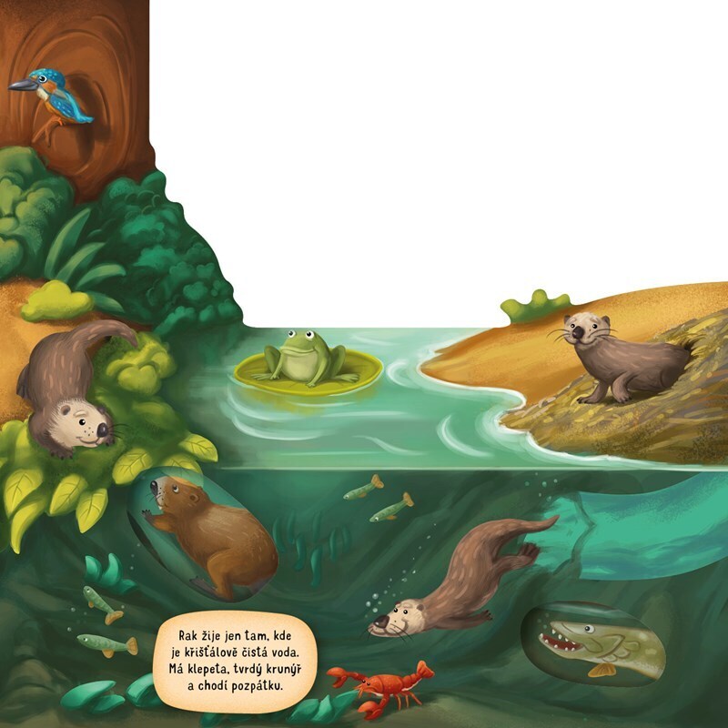 „Kvak, žbluňk, šplouch!“ U vody se ozývají nejrůznější zvuky. Chceš vědět, kdo všechno je vydává? Tak se s námi pojď podívat k řekám, tůním i rybníkům. Některá zvířátka žijí pod hladinou, jiná najdeš v okolí, společně si je ale prohlédneme všechna. Prozkoumej vodní a podvodní království! Čekají...