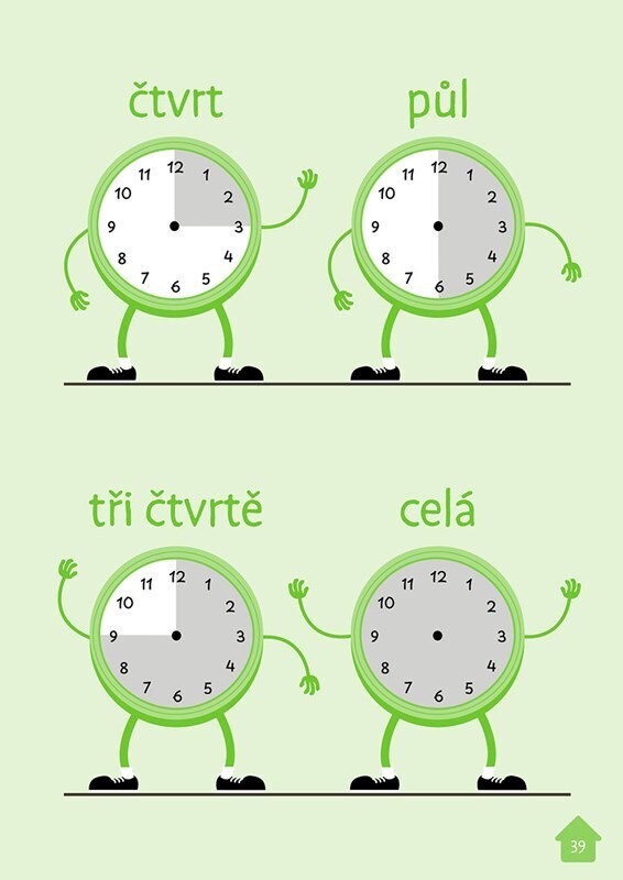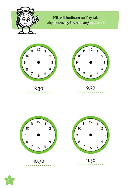 Znalost hodin se po dětech často brzy vyžaduje, ale mnohým dělá potíže. V pěti úrovních – celé hodiny, půlhodiny, čtvrthodiny, pětiminuty a minuty – si děti hravě procvičí polohu hodinových ručiček, zápis času i hledání chyb.