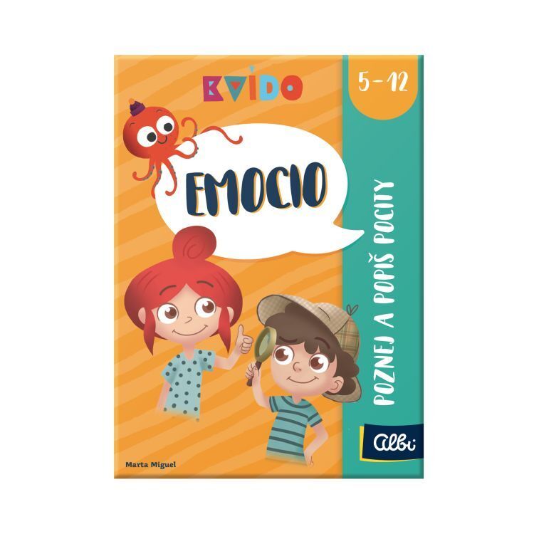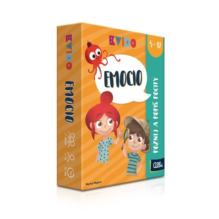 Hra Emocio od Kvída vybízí předškoláky i děti školou povinné k rozvíjení emoční inteligence. Hra obsahuje: brožuru popisující 40 emocí, vlastností nebo dovedností, 40 ilustrovaných karet emocí, vlastností nebo dovedností, přehledovou kartu, hrací kostku s ikonkami úkolů.