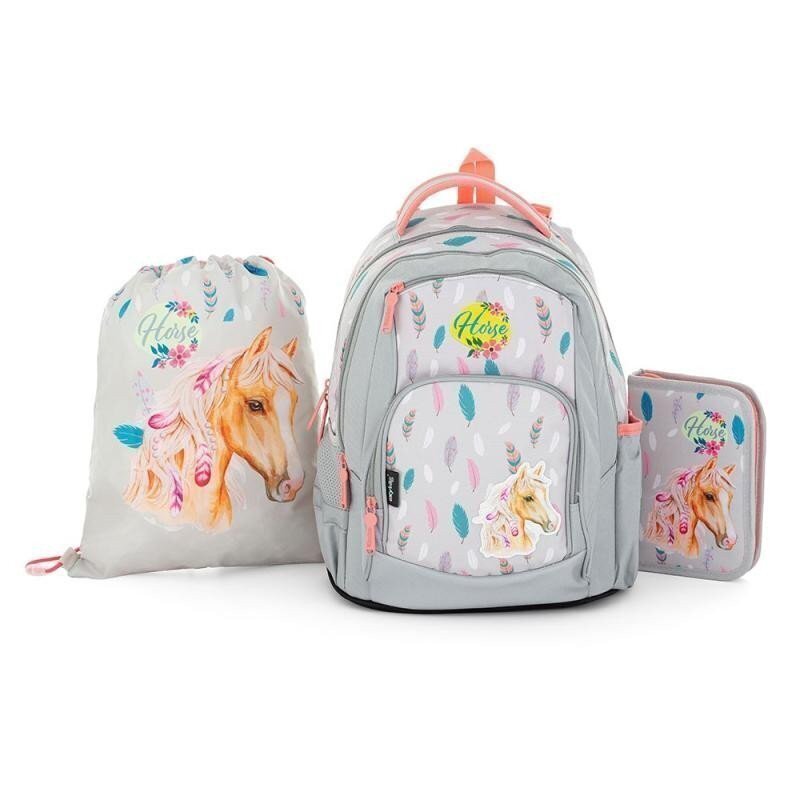 Školní set obsahuje aktovku, sáček na cvičky a jednopatrový penál se 2 chlopněmi bez náplně. Školní batoh z řady OXY GO: Tvar batohu ukrývá nejen anatomicky tvarovaná a prodyšná záda, ale také možnost nastavit si ramenní popruhy pro lepší pohodlí a komfortnější