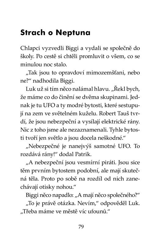 Členové Klubu Tygrů se stanou svědky neuvěřitelné události – v tajemném lese poblíž města přistane vesmírná loď. Z ní jsou na Zem vysíláni pomocí světelných paprsků mimozemšťané, kteří rychle zmizí mezi stromy. Biggi, Luk a Patrik se shodnou, že záhadné bytosti vypadají neškodně. Když se ale...
