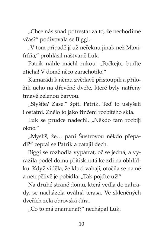 Paní Šustrová, která doučuje Biggi, Luka a Patrika, byla přepadena. Nahlásit útok na policii však z neznámého důvodu nechce. Pak někdo napadne i jejího manžela a několik dalších lidí. Všichni však zarytě mlčí. Co skrývají a co je asi spojuje? Může to být obrázek draka, který má učitelka...