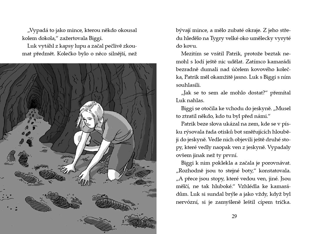 Poklidnou výletní plavbu po moři pokazí náhlá bouřka a zažene člun s Biggi, Lukem a Patrikem na záhadný ostrov, o kterém se vypráví strašidelné historky. Když najdou jeskyni a v ní zamčenou mříž, vyděsí je ohlušující řev, a před nimi se objeví přízračně bílé gorily. Kamarádi z Klubu Tygrů...