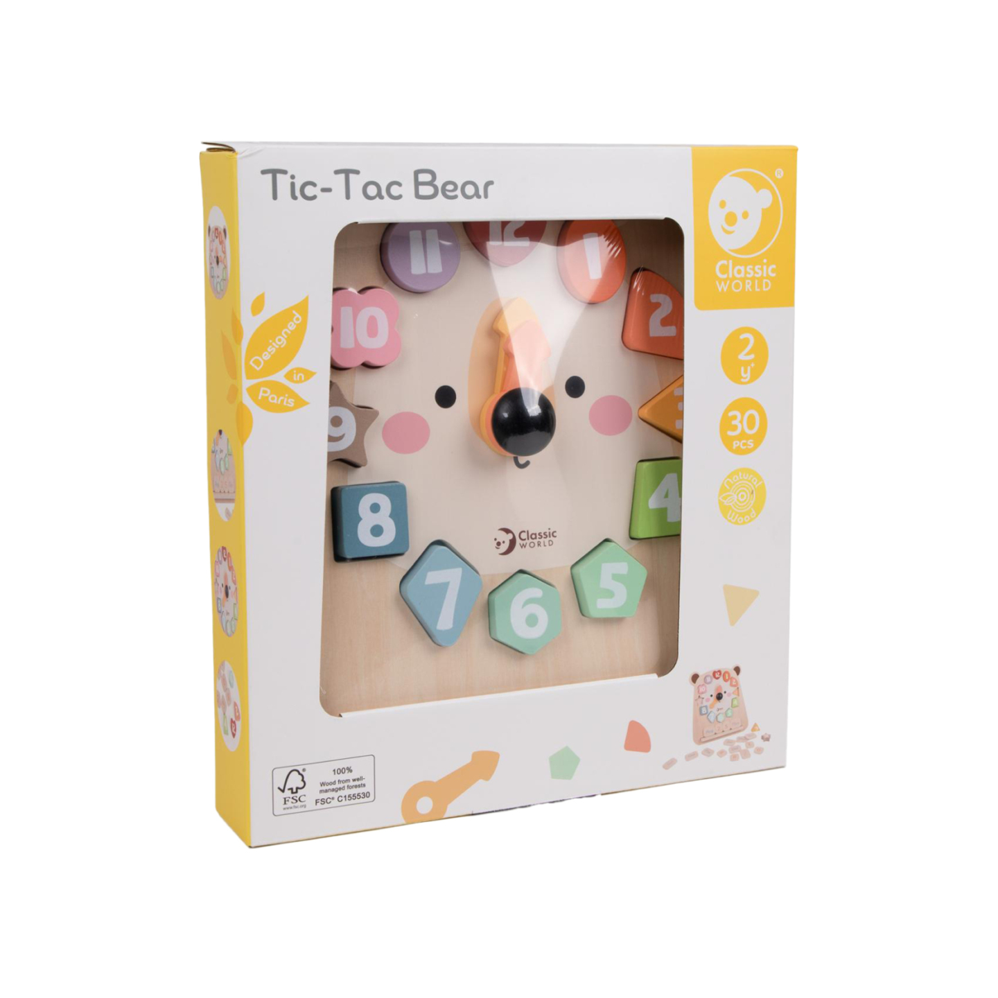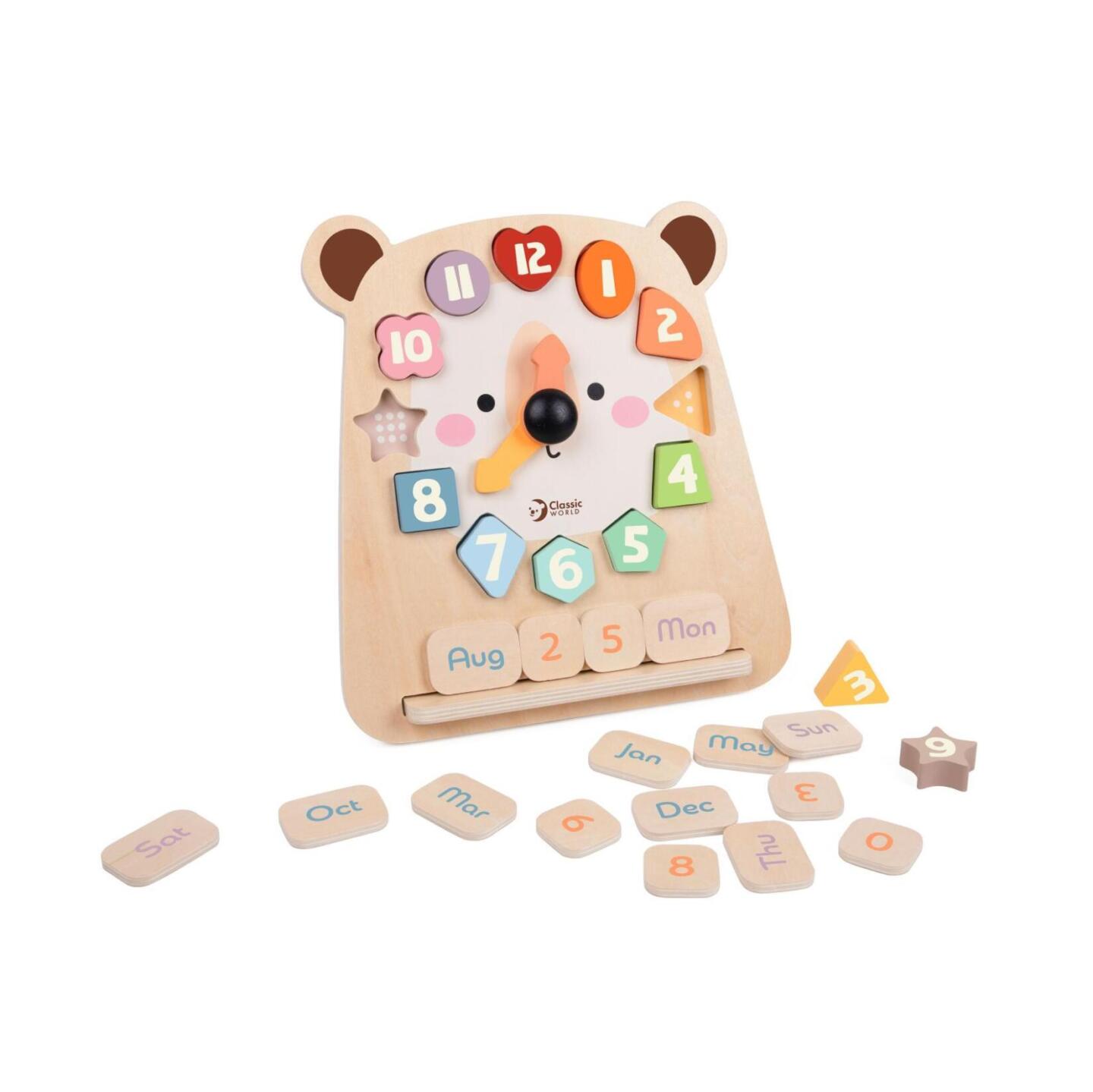 Roztomilé dřevěné hodiny s motivem medvěda pomáhají dětem zábavnou formou naučit se poznávat čas. Barevná vkládačka s čísly rozvíjí jemnou motoriku, logické myšlení i koordinaci ruky a oka. Otáčivé ručičky umožňují jednoduché procvičování hodin, zatímco jednotlivé dílky s čísly lze používat i...