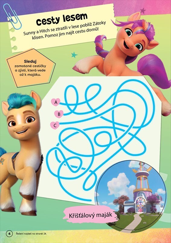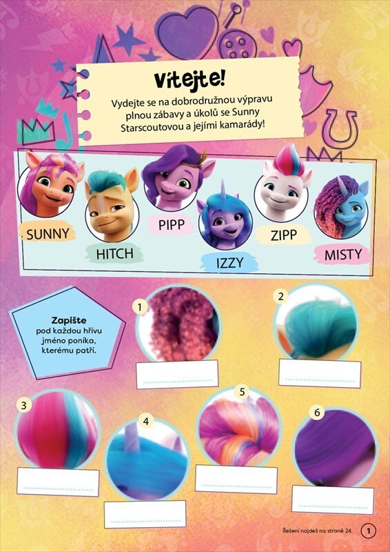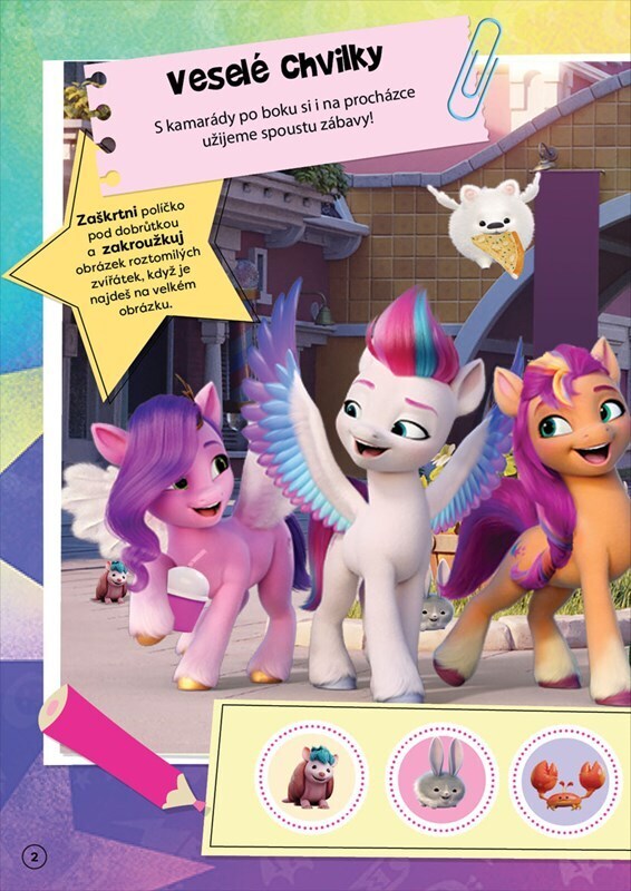 Vydejte se na dobrodružství za přátelstvím a zábavou! Přidejte se ke svým oblíbeným poníkům a společně vyřešte spoustu hádanek a kouzelných úkolů. Nezpomeňte použít bezva samolepky, které najdete uvnitř knížky.