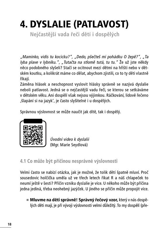 Kniha je určena pro rodiče, kteří mají doma dítě s vadou řeči a neví si s ní rady, nebo si nejsou jisti, zda při jejím zvládání postupují správně. Publikace čtenáře seznamuje s těmi vadami, které se v dětském věku vyskytují nejčastěji. Jsou zde popsány jejich projevy, obsahuje i praktické rady...