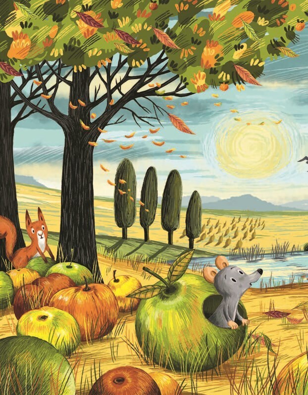 Podzim je tady a les se mění v nádherné moře barev. Liška, myš a havran posmutněli, protože dobře vědí, že teplé dny, kdy jim slunce hřeje kožíšek a peří a kdy se potrava hledá snadno, jsou sečteny. Veverku to však vůbec netrápí. Vesele si hledí svého a ani divoká podzimní bouře, která se...