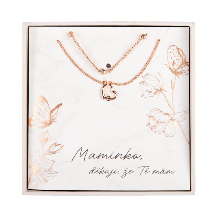 Dvojitý náhrdelník v oblíbené barvě rose gold je uložen v dárkovém balení s osobním věnováním. Upozornění: aby vám šperk dlouho vydržel jako nový, zamezte jeho styku s vodou a chemikáliemi. Materiál: měď Povrchová úprava: pozlaceno 18karátovým zlatem Délka řetízků: 45 cm, 40...