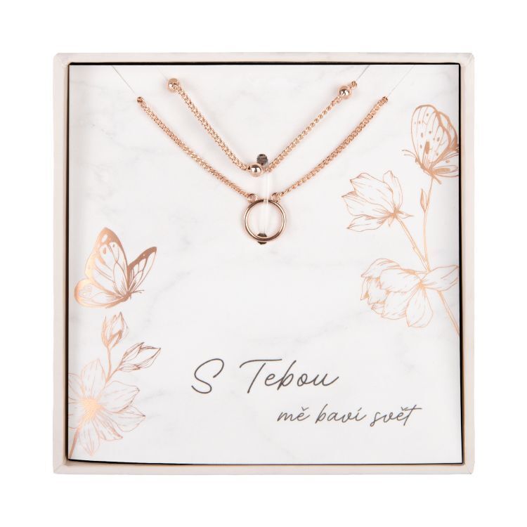 Dvojitý náhrdelník v oblíbené barvě rose gold je uložen v dárkovém balení s osobním věnováním. Upozornění: aby vám šperk dlouho vydržel jako nový, zamezte jeho styku s vodou a chemikáliemi. Materiál: měď Povrchová úprava: pozlaceno 18karátovým zlatem Délka řetízků: 45 cm, 40...