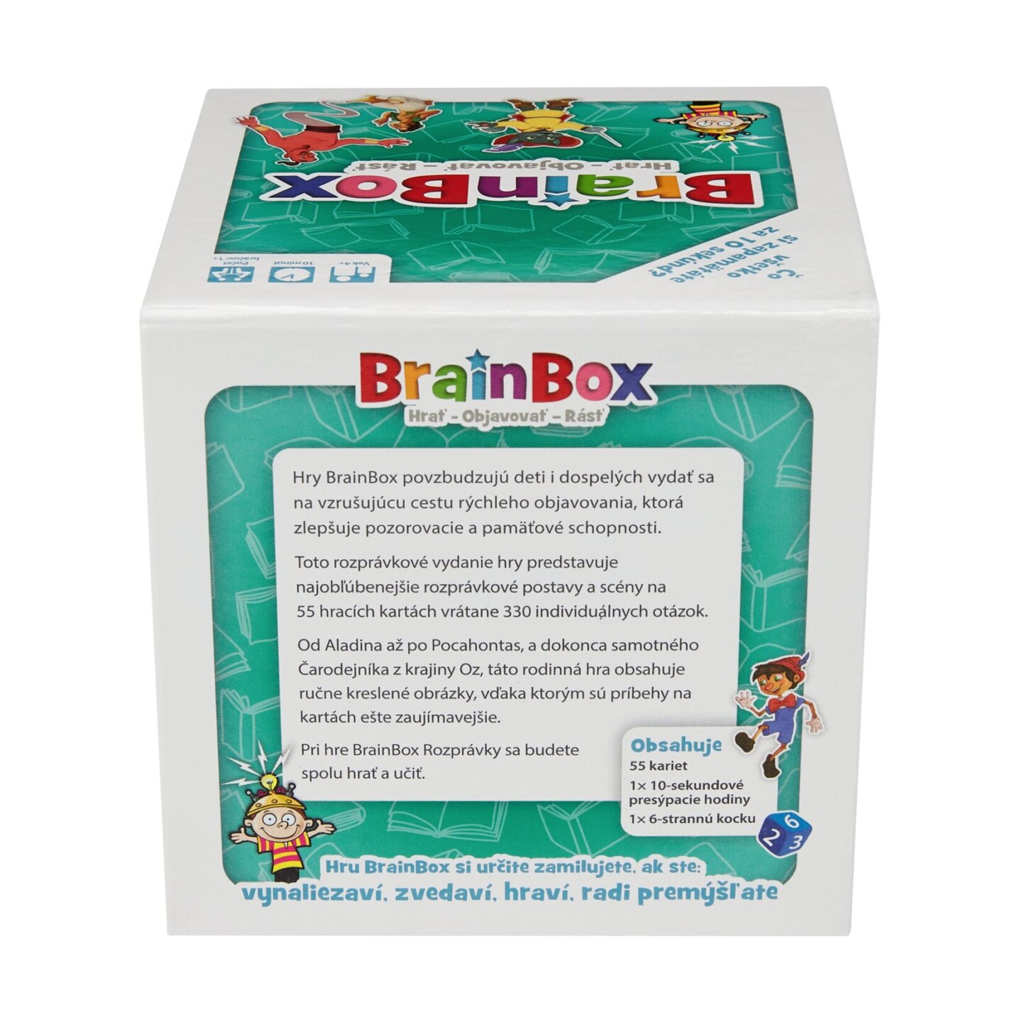 BrainBox je zábavná kartová hra na pamäť a pozornosť, ktorá preverí vaše pozorovacie schopnosti. Čo si zapamätáte za 10 sekúnd? Táto edícia hry o rozprávkach obsahuje kultové postavy a scény z vašich obľúbených rozprávok. BrainBox Rozprávky obsahuje 55 ručne ilustrovaných kariet s klasickými...