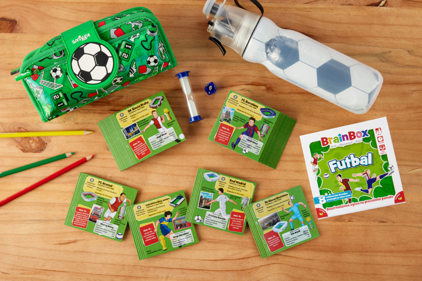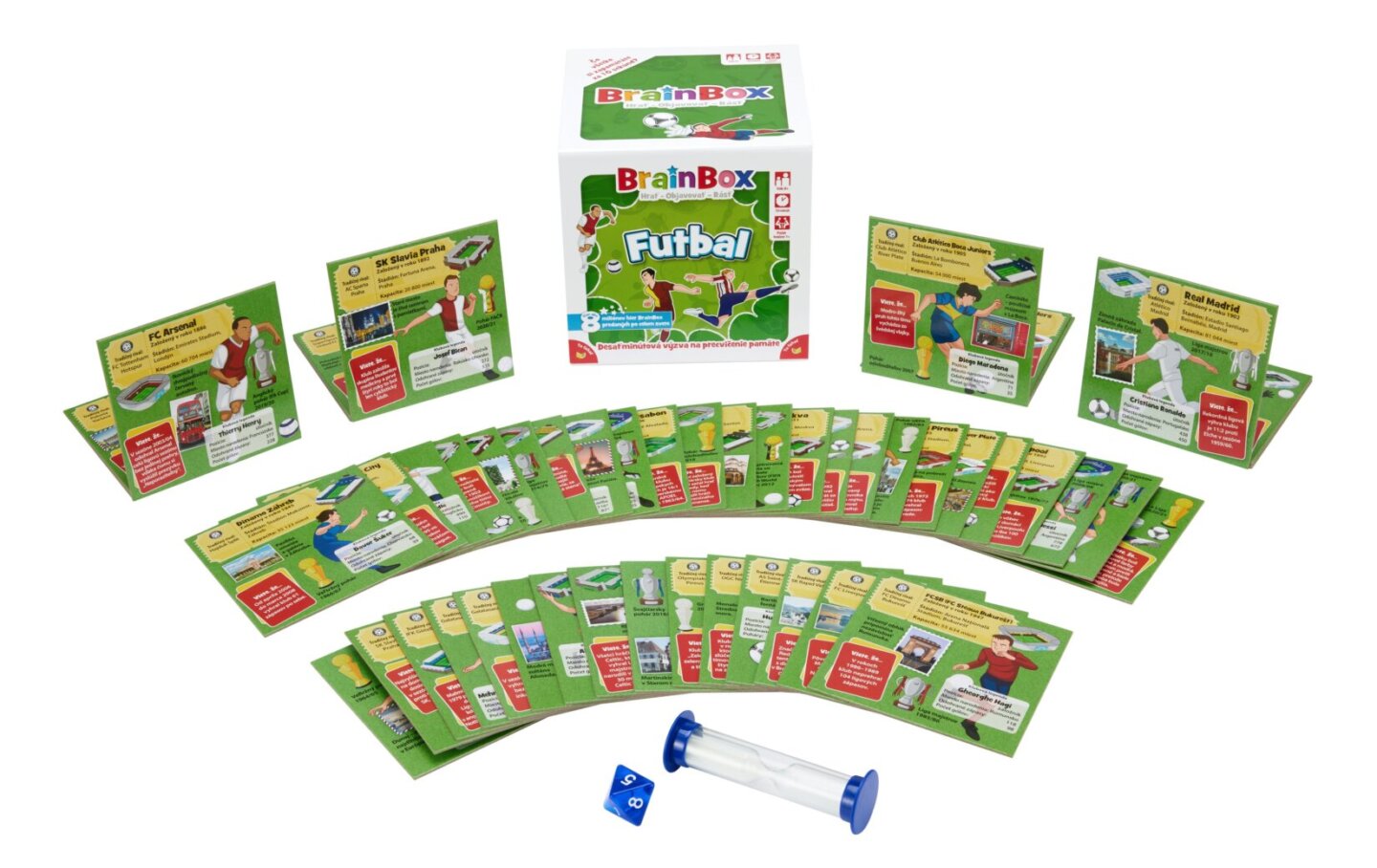 nejznámějšími fotbalovými týmy světa, jejich stadiony a klubovými legendami. Hra BrainBox Futbal obsahuje 55 hracích karet s ručně malovanými Ilustracemi, včetně ŠK Slovan Bratislava a českých klubů SK Slavia Praha a AC Sparta Praha. Hra pomáhá malým i velkým fanouškům