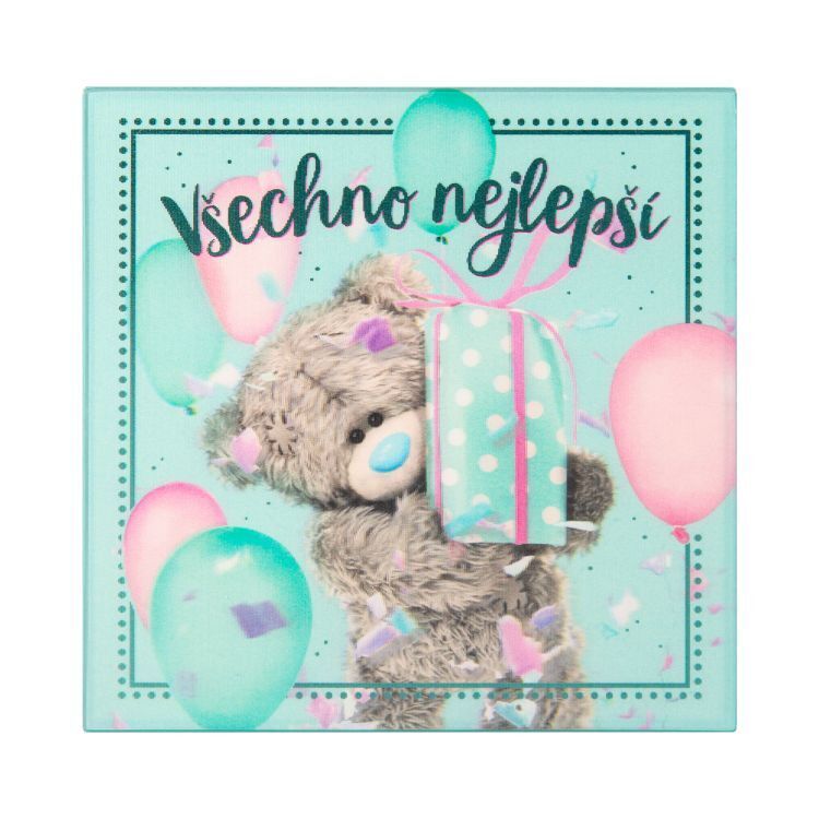 Mléčná čokoláda v dárkovém balení s 3D medvídky Me to You potěší milým vzkazem. Hmotnost: 90 g Rozměry: 10,2 cm × 10,2 cm × 1,5 cm.