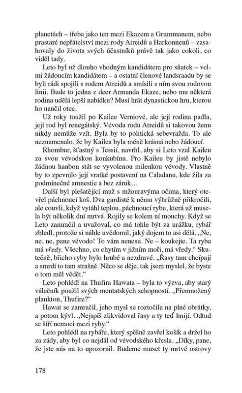 Shaddam IV. čelí hrozbě ztráty trůnu, pokud nezplodí mužského dědice. Jeho moc ohrožuje baron Harkonnen i rod Atreidů. Sesterstvo Bene Gesserit se soustředí na stvoření božského dítěte, zatímco celé Impérium sužuje těžba melanže. Na odpor se staví noví hrdinové: Liet-Kynes, C’tair i Gurney...