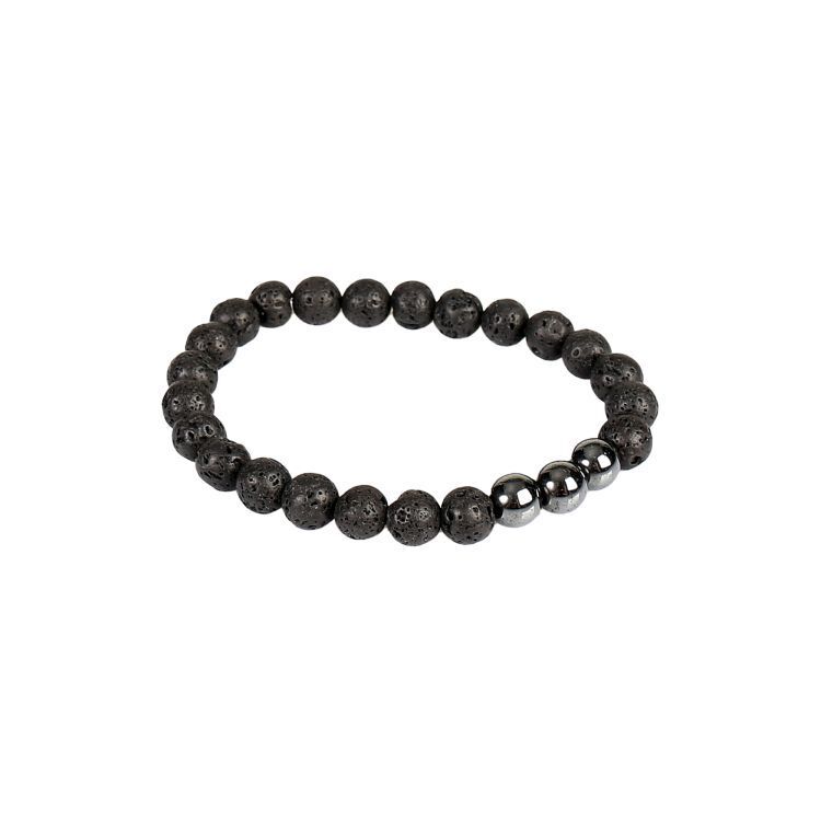 Náramek "Úžasný chlap" z lávových kamenů je doplněn kamínky hematitu, které svému nositeli dodají sílu a vitalitu a podpoří jeho rozhodnost a odvahu.