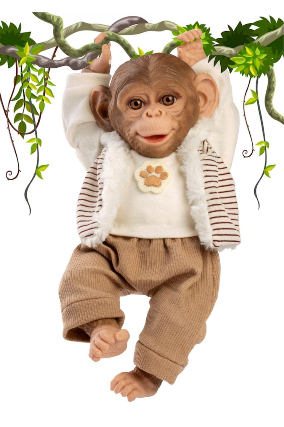 Guca 987 REBORN OPIČKA - realistická opička miminko s měkkým látkovým tělem - 32 cm