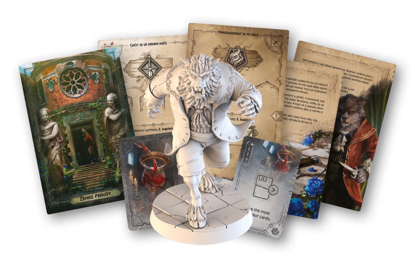 poznejte Nivellenovo tajemství a pečlivě plánujte své kroky. Obsah balení: 1 figurka Triss 1 dvouvrstvý plán hráče 1 plán pro sólo režim 6 karet 1 figurka Nivellena 16 karet záhad 23 karet příběhu 8 žetonů 6 dřevěných ukazatelů česká pravidla