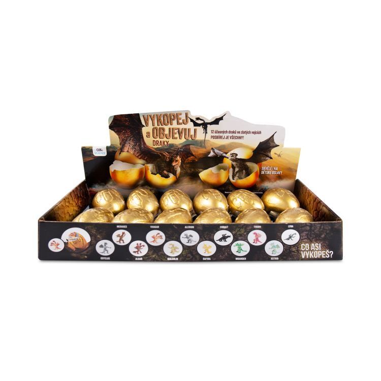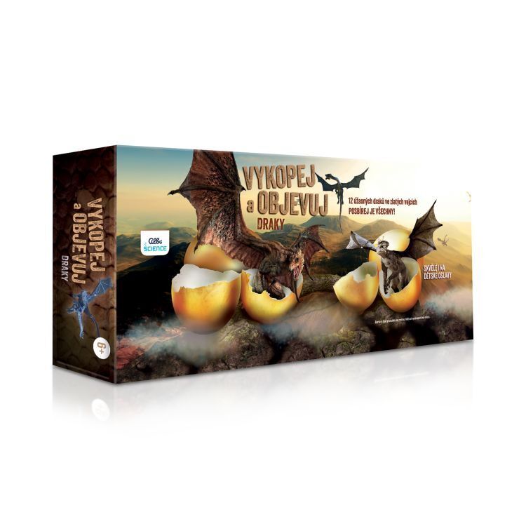 Jedinečná sada Vykopej a objevuj - Draci od Albi Science skrývá 12 zlatých vajec s překvapením v podobě dračích figurek. Každá figurka je zcela odlišná. Cena je uvedena za 1 ks vejce. Sada Vykopej a objevuj - Draci obsahuje: 12 sádrových vajec s figurkami, 12 malých nástrojů.
