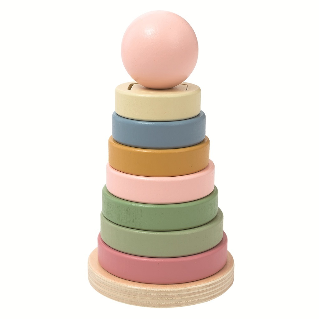 doplňkem dětského pokojíčku nebo herny. Hlavní vlastnosti: kombinace vkládací a stohovací hračkynasazování kroužků různých velikostírozvíjí jemnou motoriku a koordinaci ruka-okopomáhá s rozpoznáváním tvarů a velikostíkvalitní dřevěné provedeníjemné přírodní