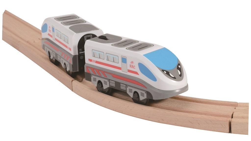 herních světů. Skvělá volba pro rozvoj jemné motoriky, koordinace pohybů a dětské fantazie. Hlavní vlastnosti: lokomotiva s vagonkem v moderním designuelektrický pohon (baterie 1×AA 1,5 V, nejsou součástí balení)dřevěné koleje nejsou součástí balenímagnetické spojování