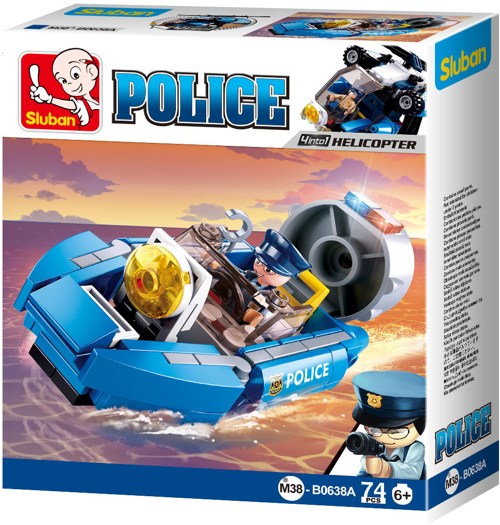 Ministavebnice policejní techniky ze série Policie 4into1, jejíž kompletací vznikne možnost sestavit velký ucelený model helikoptéry. Inovativní stavebnice Sluban je možno kombinovat s podobnými stavebnicemi mnoha dalších významných výrobců. Jsou vyráběny z kvalitního, nezávadného a odolného ABS...