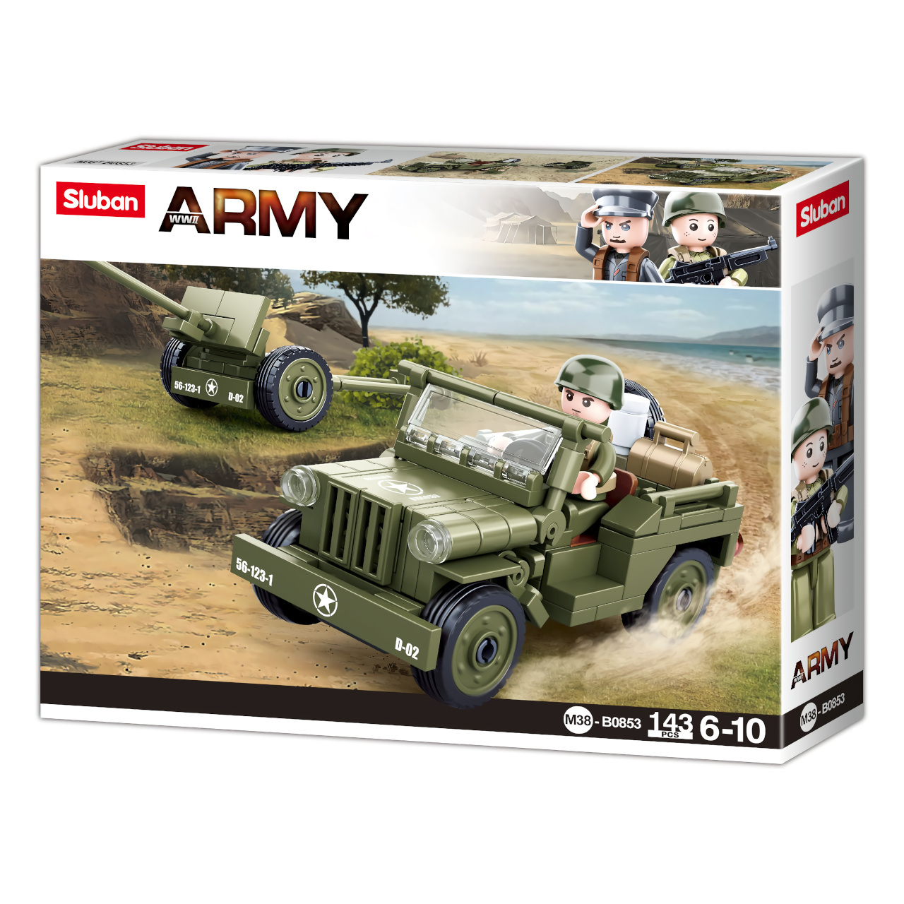 Sluban Army WW2 M38-B0853 Spojenecký džíp a protiletadlové dělo