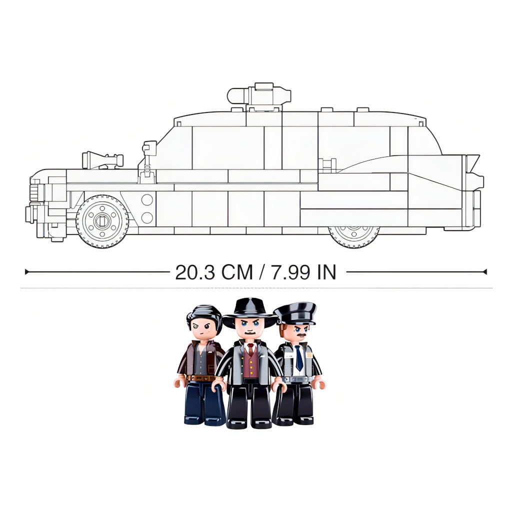 Americký vůz pro lupiče je stavebnice z kolekce Sluban Model Bricks. Úspěšná loupež za bílého dne je velmi obtížná a často vyžaduje tým profesionálů s rychlým vozem. Jak dopadne tato honička dvou zlodějů, kteří vlečou právě ukradený sejf plný zlata? Dopadne je
