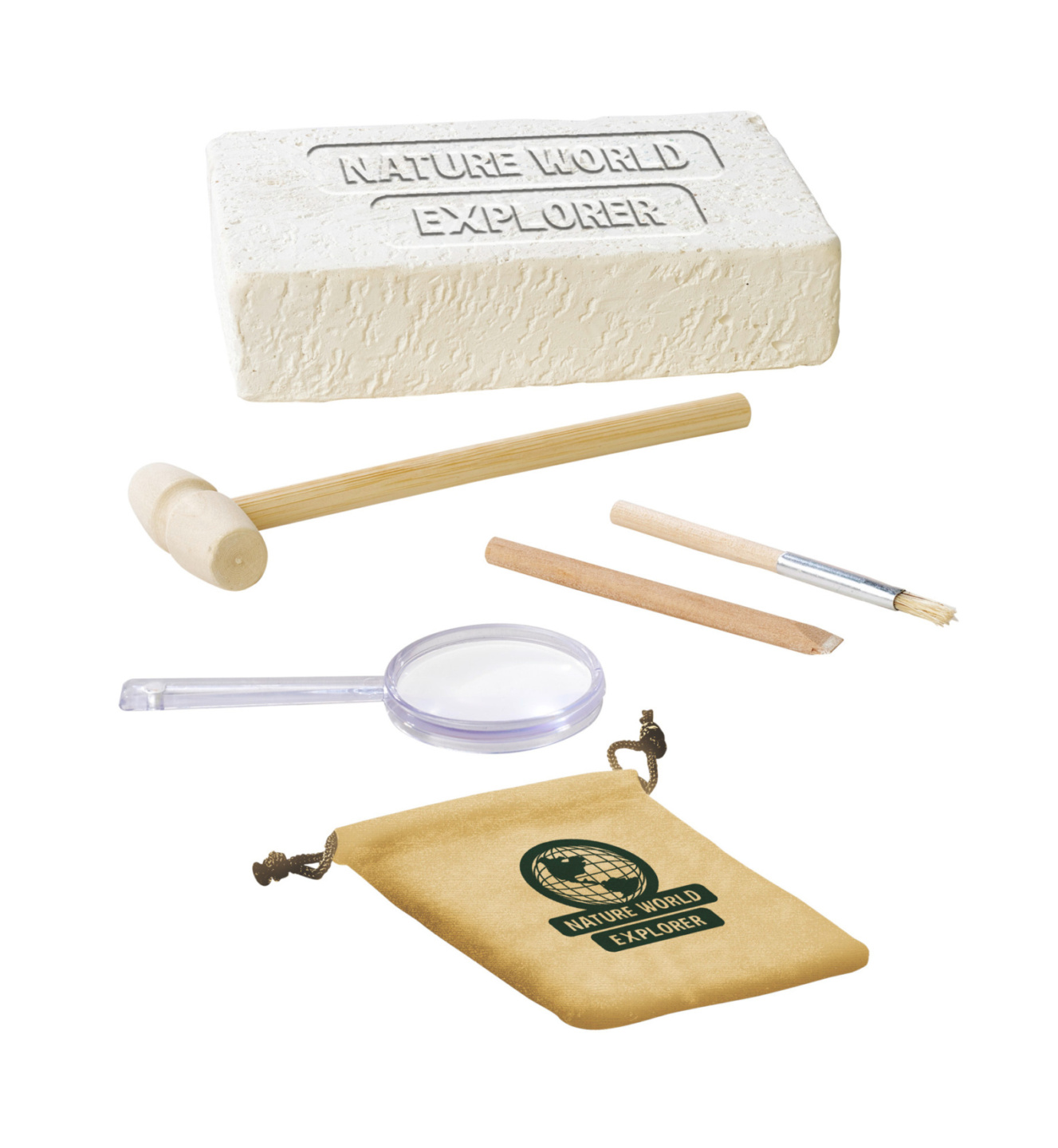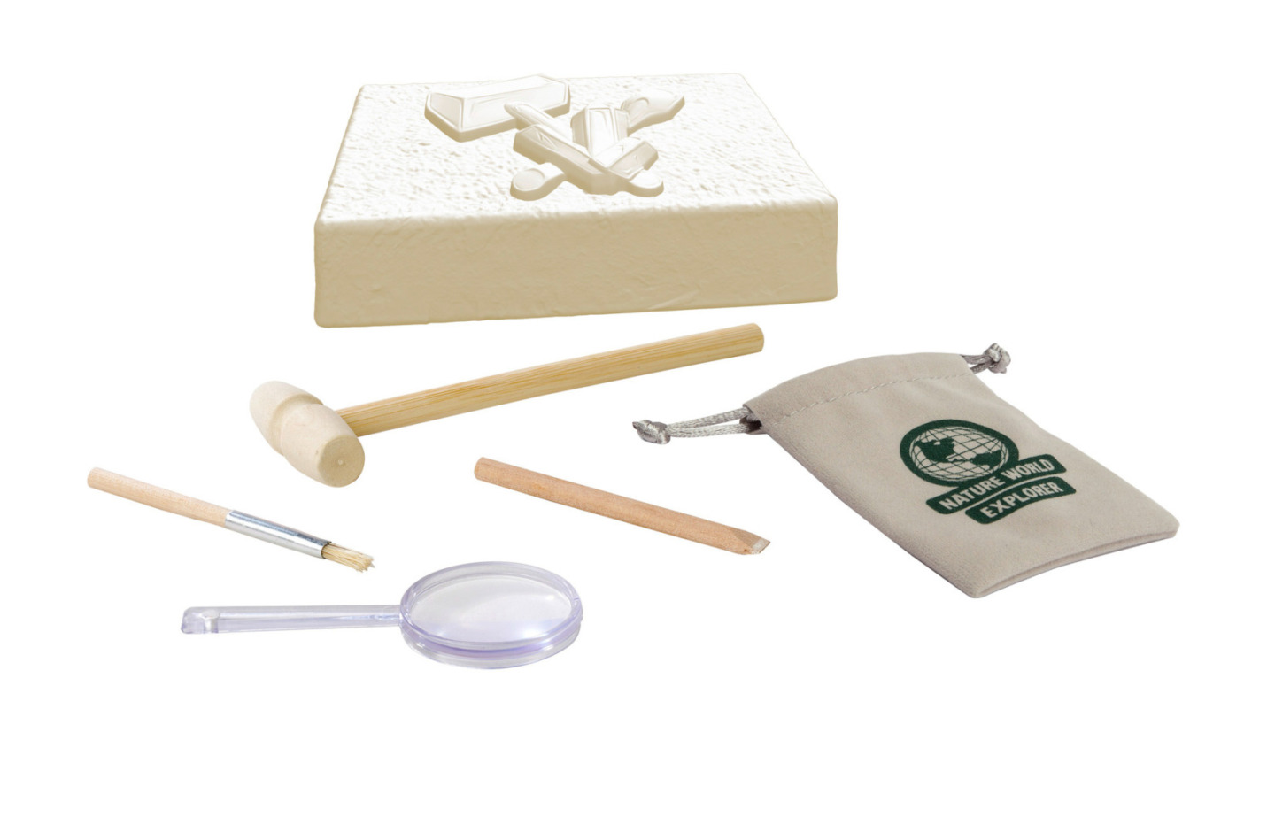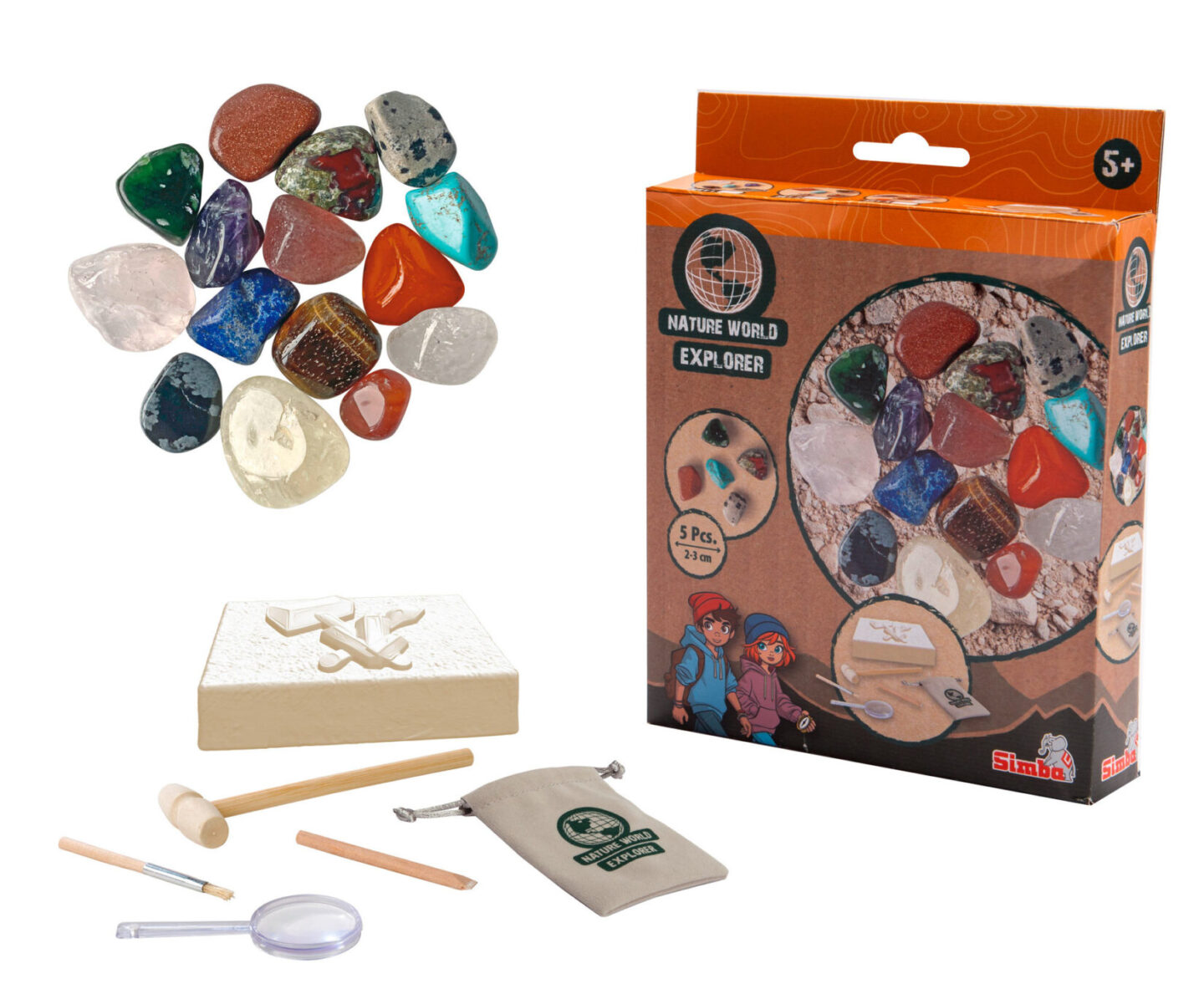 Sada na těžbu minerálů obsahuje vždy 5 ks minerálů o velikosti 2-3 cm. Součástí je lupa, nářadí a pytlíček.