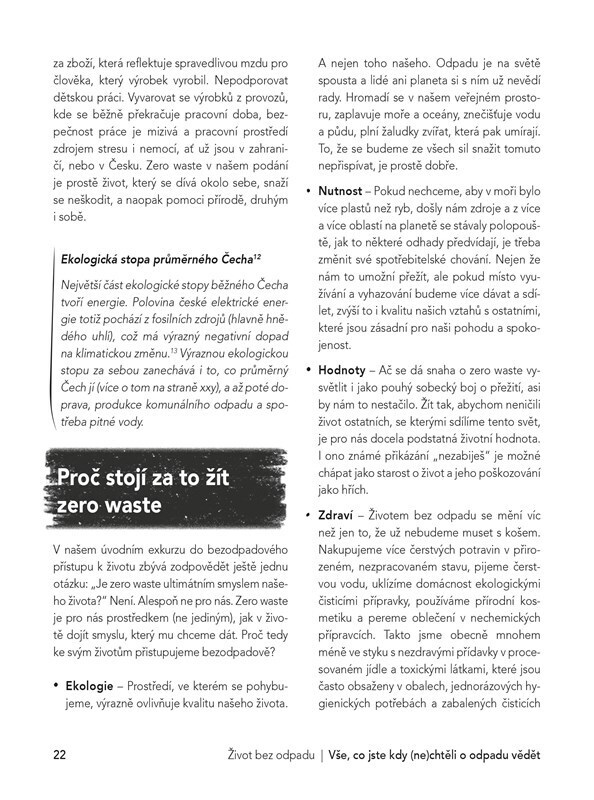 Je vůbec možné žít bez odpadu? Ano je! Tedy skoro. Jak na to vám představí trojice autorek, které založily známý blog Czech Zero Waste o životním stylu, který snižuje negativní dopad nejen na životní prostředí, ale i na lidi v našem okolí. Poradí vám, jak s životem bez odpadu začít, jak v praxi...