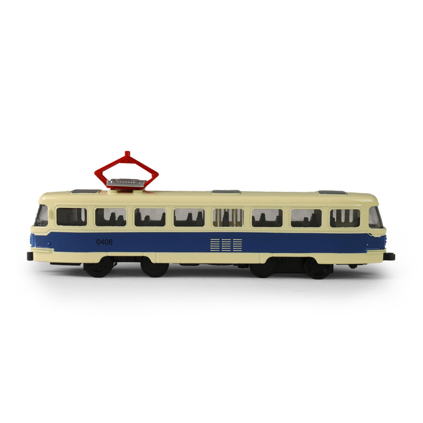 Kovová česká retro tramvaj modrá 16 cm-otevírací dveře