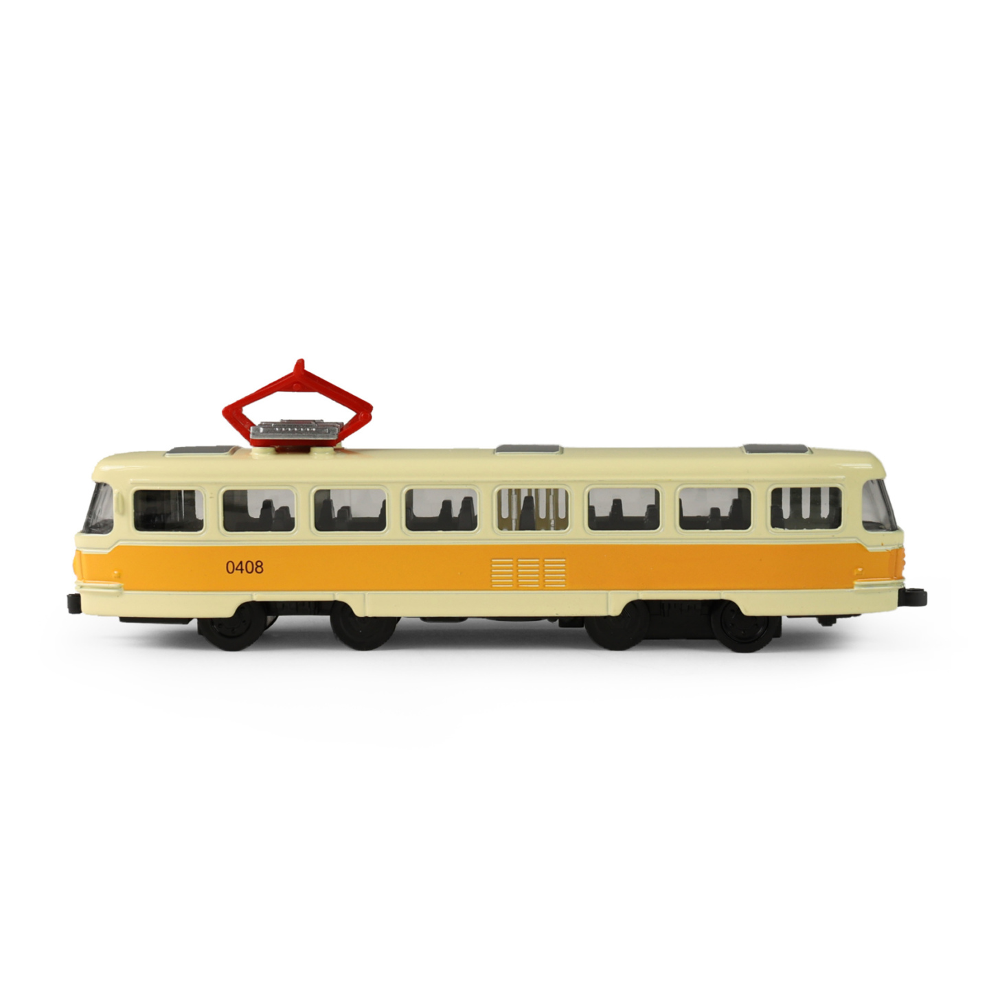 Kovová česká retro tramvaj žlutá 16 cm-otevírací dveře