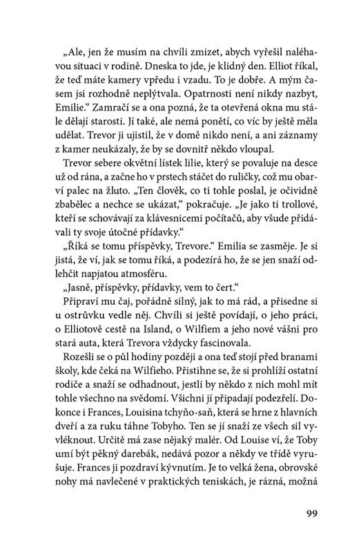 Emilia Wardová žije na poklidném předměstí Londýna. Na první pohled zcela obyčejná manželka a matka dvou dětí je ale slavná spisovatelka. Právě když píše desátý díl své detektivní série, nabere její život nečekané a nebezpečné obrátky: v realitě se totiž odehraje scéna z její knihy. A potom...