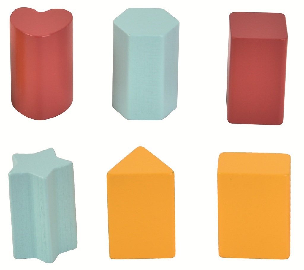 Chytrá dřevěná hračka, která spojuje zábavu s učením! Děti vhazují tvary do otvorů podle jejich barvy a tvaru. Každý ze tří šuplíků má nad sebou dva otvory a je zepředu barevně označen. Podaří-li se vhazovaný tvar správně roztřídit, sklouzne do odpovídajícího