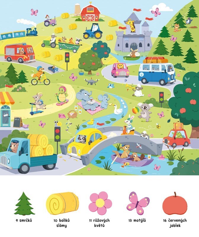Chceš si procvičit postřeh, paměť a ukázat, jak umíš počítat? Podívej se s Tomem a Žofkou do rušného světa světa dopravy a pomoz jim najít všechny věci poschovávané v obrázcích. Na jejich výletě mezi auta, letadla i lodě tě čeká celkem 1001 věcí k hledání a to už je pořádný kopec...