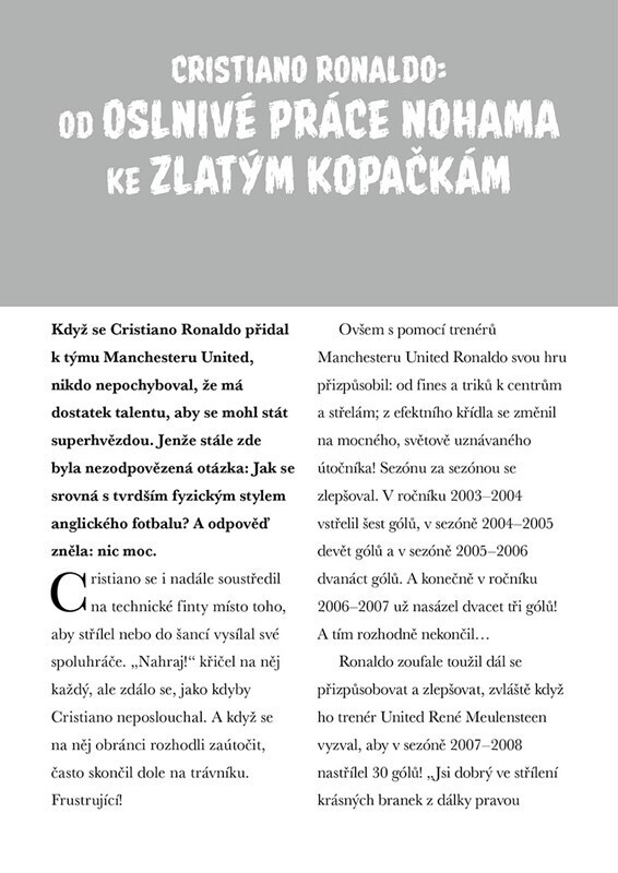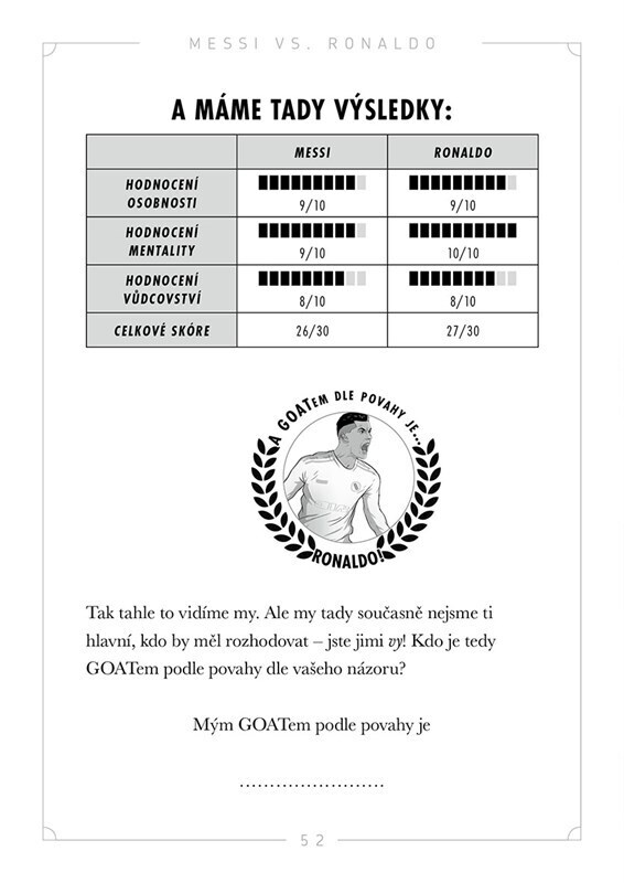 Dva fotbaloví velikáni a jedna zásadní otázka. Kdo z nich je skutečný GOAT, tedy nejlepší fotbalista všech dob? Věčné téma všech diskusí o fotbalu. Tato zábavná kniha tě provede úžasnými kariérami Lionela Messiho a Cristiana Ronalda – od úplných začátků až po rekordy, které přepsaly dějiny....
