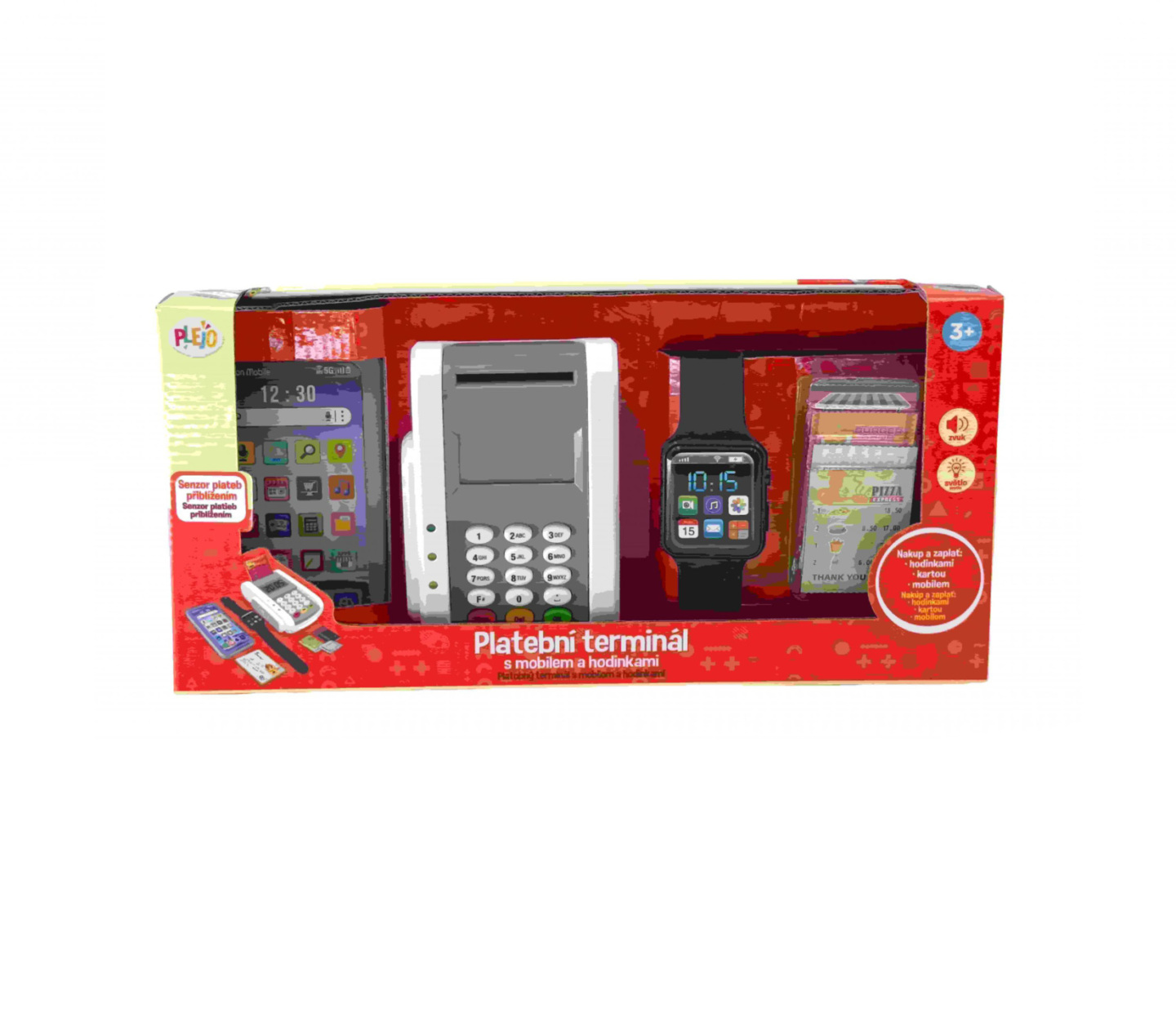jsou pryč a hurá, můžeš dát zákazníkovi zboží.Plať hodinkami: A co třeba hodinky? I s těmi se dá platit! Když je někdo přiloží k terminálu, taky to pípne a je hotovo.Proč je PLEJO terminál super hračka?Jako opravdový: Vypadá a funguje skoro jako ten dospělácký, takže si