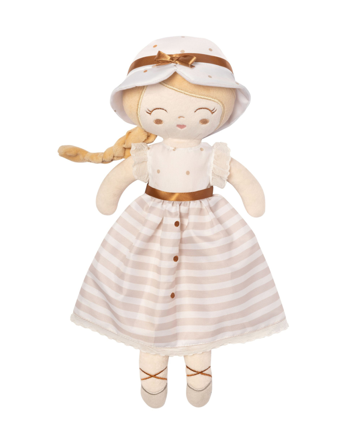 Panenka je vyrobena z vysoce kvalitního hladkého lesklého plyše a je pratelná (ručně na 30 °C). Díky své velikosti a nízké váze je ideální společnicí každé malé holčičky nejenom na cestách, ale díky měkkému materiálu je příjemná i na mazlení do postýlky. Panenka je