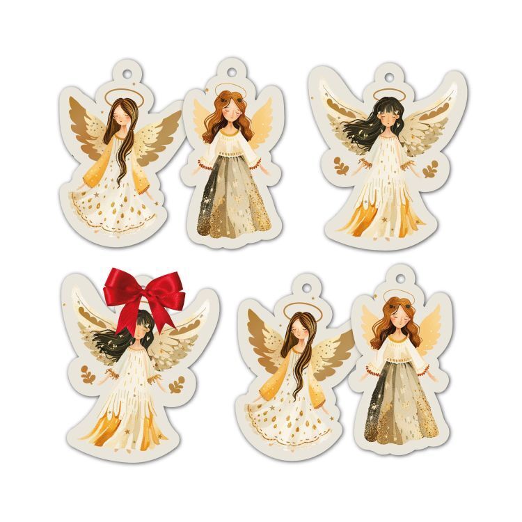 Balení vánočních papírových jmenovek na dárek ve tvaru andlíků. Průměr jmenovky: cca 10 cm