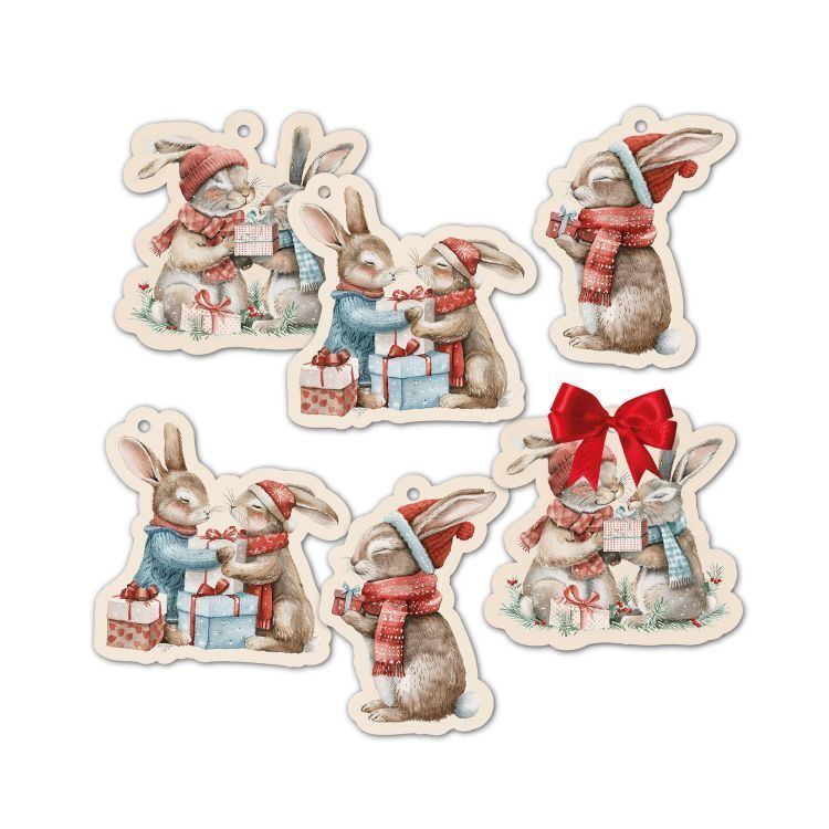 Dárková visačka 6 ks - Vánoční zajíčci