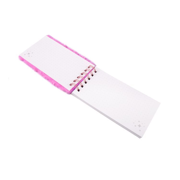 Hebké zápisníky mají kroužkovou vazbu a gumičku na zavírání. Listy jsou tečkované. Rozměry bloků: 9 × 17 × 1,5 cm