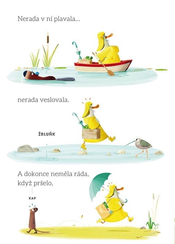 Byla jednou jedna kachna, která nebyla jako ostatní… Neměla ráda vodu. Jenže pak ji osud svedl dohromady s žabkou, která vodu naopak milovala. Jak se s tím kachna vypořádá? Dozvíte se to v téhle dojemné, nádherně ilustrované knížce o hledání přátelství i za cenu překonání vlastních strachů. (A...