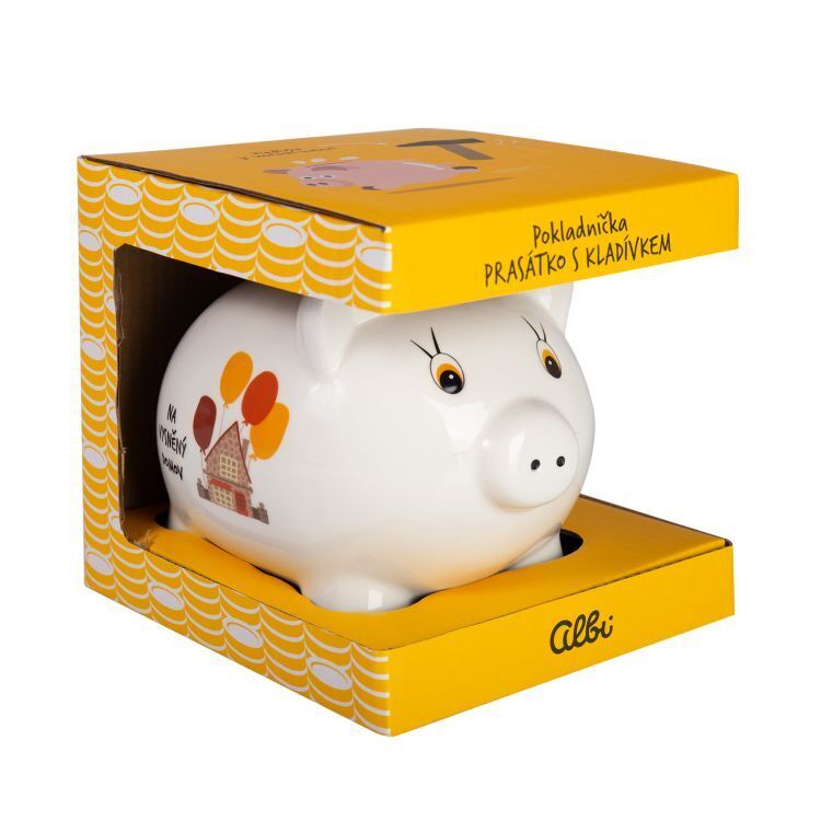 Klasické pokladničky ve tvaru prasátka s milým věnováním potěší všechny šetřílky. Součástí balení je i kladívko, které vás k vytoužené částce nakonec dostane. Materiál: Porcelán Rozměry: 14 cm × 15 cm × 16 cm