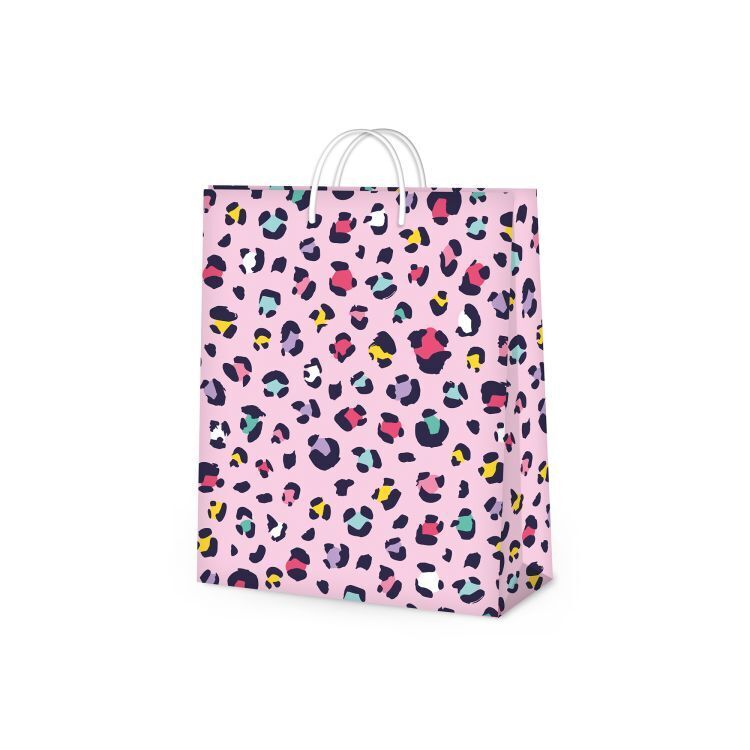 Papírová dárková taška s růžovým leopardím vzorem pro všechny dámy a mladé slečny. Rozměry: 17,8 × 9,8 × 22,9 cm
