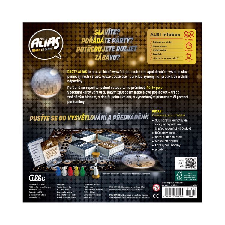 V této párty hře vysvětlujete ostatním spoluhráčům význam slov pomocí jiných výrazů, takže používáte například synonyma, protiklady a nápovědy. Na prémiových polích na vás čekají i jiné úkoly: předvádění zvířat či povolání, hledání vhodných rýmů, popisování slavných osobností nebo hledání co...