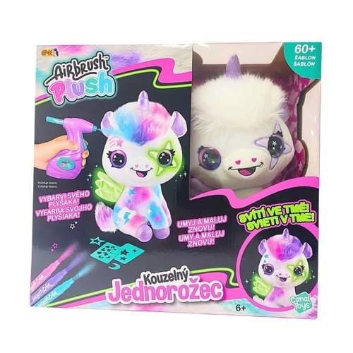 Navrhni a vybarvi si svého kouzelného jednorožce, který dokonce svítí ve tmě. Součástí tohoto balení je plyšové zvířátko, airbrush nástroj, 3 různé barevné náplně, 60 různých šablon a návod. Plyšové zvířátko si můžeš pomocí airbrushe libovolně posprejovat, můžeš využít různé barvy a šablony....